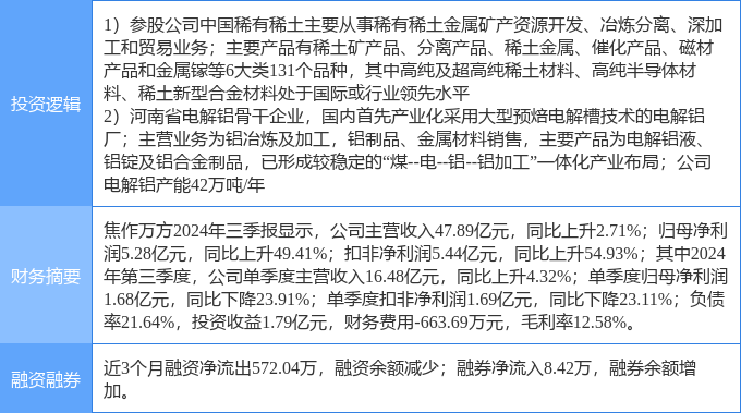 该股为稀土磁材,有色金属,有色 · 铝概念热股,当日稀土磁材概念上涨1.2%,有色金属概念上涨0.61%,有色 · 铝概念上涨0.42%。