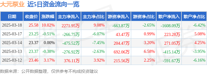 3月18日的资金流向数据方面,主力资金净流入2271.95万元,占总成交额9.08%,游资资金净流出663.87万元,占总成交额2.65%,散户资金净流出1608.09万元,占总成交额6.42%。