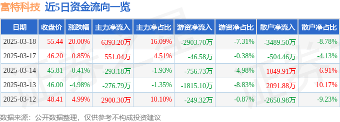 3月18日的资金流向数据方面,主力资金净流入6393.2万元,占总成交额16.09%,游资资金净流出2903.7万元,占总成交额7.31%,散户资金净流出3489.5万元,占总成交额8.78%。
