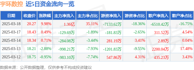3月18日的资金流向数据方面,主力资金净流入1.36亿元,占总成交额35.11%,游资资金净流出7133.62万元,占总成交额18.36%,散户资金净流出6510.42万元,占总成交额16.75%。