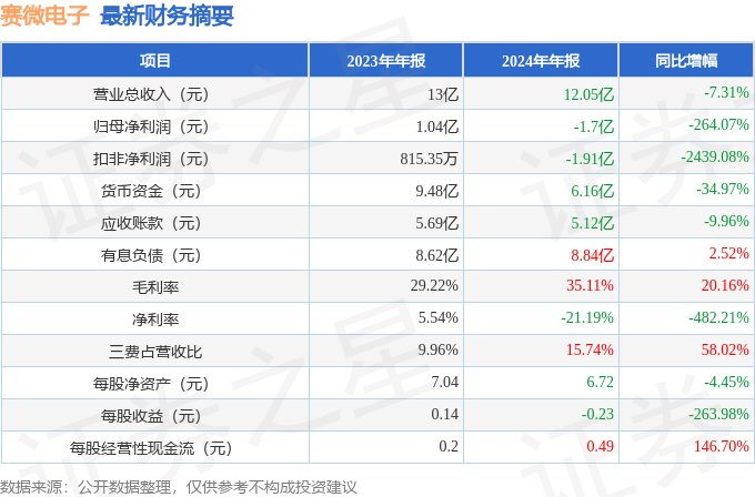 据证券之星公开数据整理,近期赛微电子(300456)发布2024年年报。截至本报告期末,公司营业总收入12.05亿元,同比下降7.31%,归母净利润-1.7亿元,同比下降264.07%。按单季度数据看,第四季度营业总收入3.79亿元,同比下降2.75%,第四季度归母净利润-5222.41万元,同比下降157.16%。本报告期赛微电子三费占比上升明显,财务费用、销售费用和管理费用总和占总营收同比增幅达58.02%。