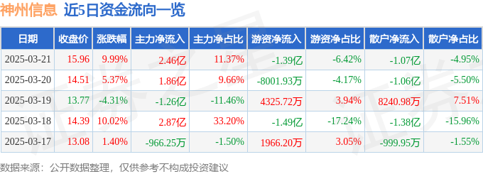 3月21日的资金流向数据方面,主力资金净流入2.46亿元,占总成交额11.37%,游资资金净流出1.39亿元,占总成交额6.42%,散户资金净流出1.07亿元,占总成交额4.95%。
