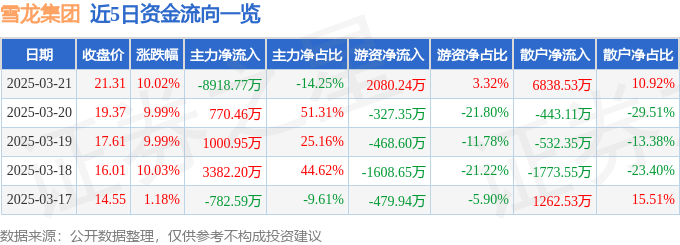 3月21日的资金流向数据方面,主力资金净流出8918.77万元,占总成交额14.25%,游资资金净流入2080.24万元,占总成交额3.32%,散户资金净流入6838.53万元,占总成交额10.92%。