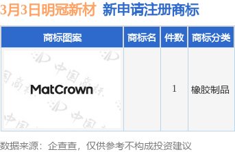 今年以来明冠新材料股份有限公司新申请注册商标1件,截止目前公司共持有注册商标14件,另有5件商标尚在注册申请中。