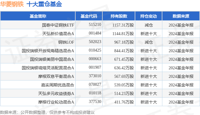 持有华菱钢铁最多的基金为国泰中证钢铁ETF,目前规模为8.66亿元,最新净值1.3003(3月21日),较上一交易日上涨0.74%,近一年上涨13.4%。该基金现任基金经理为吴中昊。