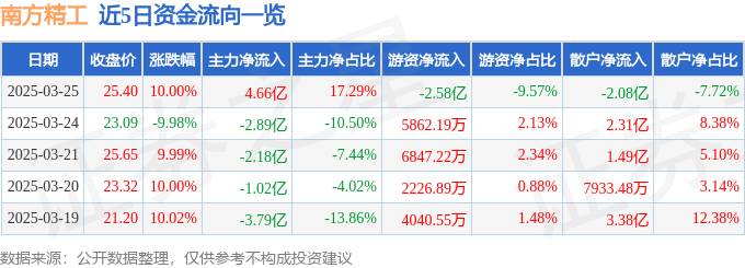 3月25日的资金流向数据方面,主力资金净流入4.66亿元,占总成交额17.29%,游资资金净流出2.58亿元,占总成交额9.57%,散户资金净流出2.08亿元,占总成交额7.72%。