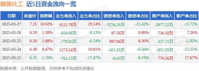 3月27日的资金流向数据方面,主力资金净流入6111.78万元,占总成交额29.14%,游资资金净流出3234.26万元,占总成交额15.42%,散户资金净流出2877.52万元,占总成交额13.72%。