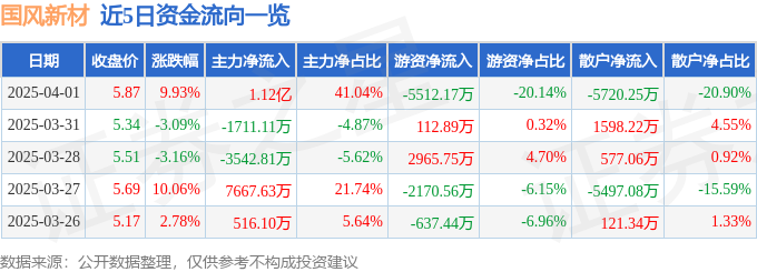 4月1日的资金流向数据方面,主力资金净流入1.12亿元,占总成交额41.04%,游资资金净流出5512.17万元,占总成交额20.14%,散户资金净流出5720.25万元,占总成交额20.9%。