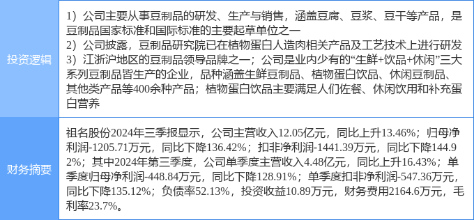 该股为大豆,人造肉,植物奶概念热股,当日大豆概念上涨3.86%。