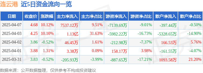 4月7日的资金流向数据方面,主力资金净流入7537.12万元,占总成交额9.51%,游资资金净流出7139.69万元,占总成交额9.01%,散户资金净流出397.44万元,占总成交额0.5%。