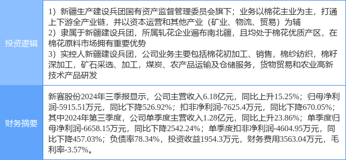 该股为国企改革,新疆概念,农垦概念热股,当日国企改革概念上涨2.68%,新疆概念概念上涨2.6%,农垦概念上涨2.51%。