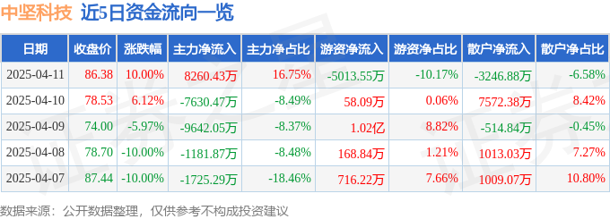 4月11日的资金流向数据方面,主力资金净流入8260.43万元,占总成交额16.75%,游资资金净流出5013.55万元,占总成交额10.17%,散户资金净流出3246.88万元,占总成交额6.58%。