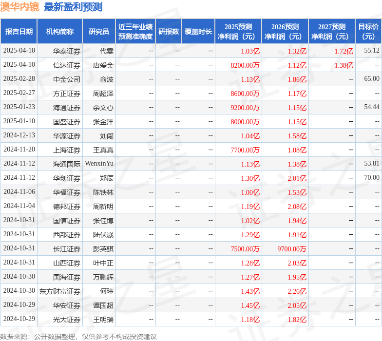以下是详细的盈利预测信息: