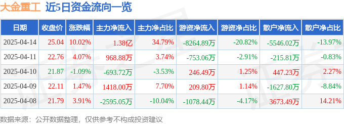 4月14日的资金流向数据方面,主力资金净流入1.38亿元,占总成交额34.79%,游资资金净流出8264.89万元,占总成交额20.82%,散户资金净流出5546.02万元,占总成交额13.97%。