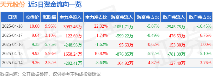 4月18日的资金流向数据方面,主力资金净流入3997.46万元,占总成交额22.32%,游资资金净流出1051.71万元,占总成交额5.87%,散户资金净流出2945.75万元,占总成交额16.45%。