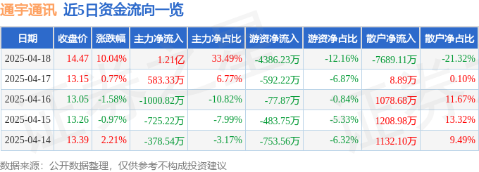 4月18日的资金流向数据方面,主力资金净流入1.21亿元,占总成交额33.49%,游资资金净流出4386.23万元,占总成交额12.16%,散户资金净流出7689.11万元,占总成交额21.32%。