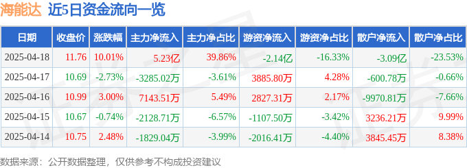 4月18日的资金流向数据方面,主力资金净流入5.23亿元,占总成交额39.86%,游资资金净流出2.14亿元,占总成交额16.33%,散户资金净流出3.09亿元,占总成交额23.53%。