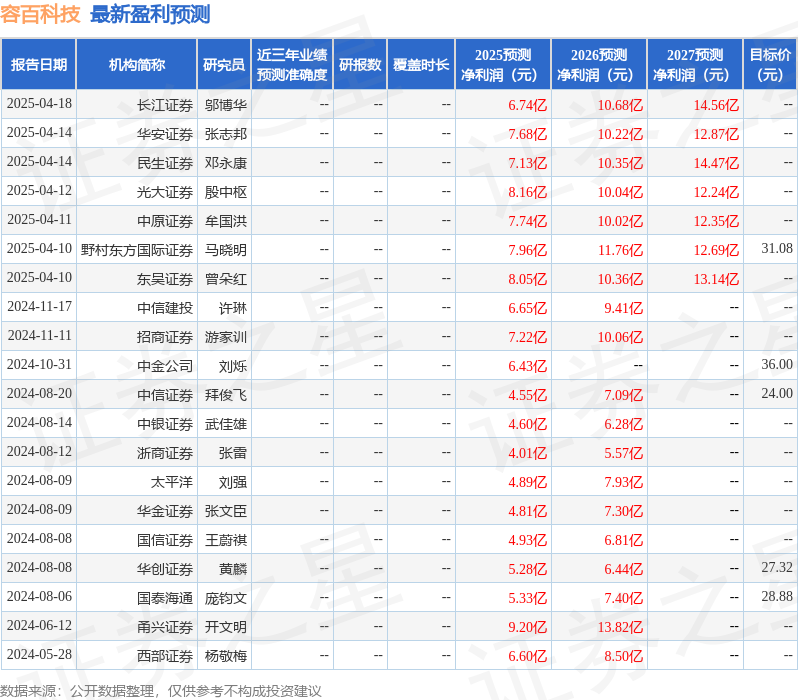 以下是详细的盈利预测信息: