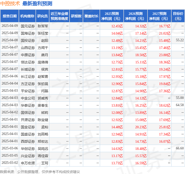 以下是详细的盈利预测信息: