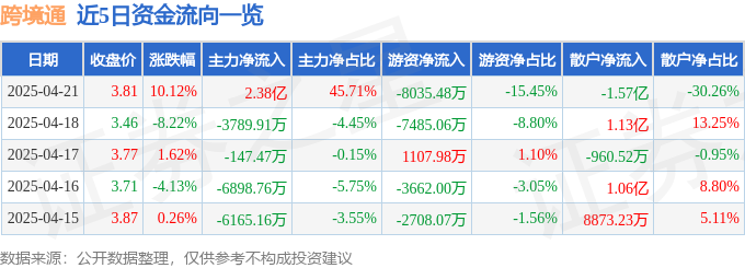 4月21日的资金流向数据方面,主力资金净流入2.38亿元,占总成交额45.71%,游资资金净流出8035.48万元,占总成交额15.45%,散户资金净流出1.57亿元,占总成交额30.26%。