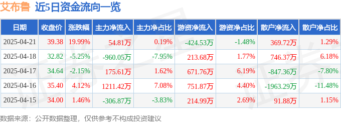 4月21日的资金流向数据方面,主力资金净流入54.81万元,占总成交额0.19%,游资资金净流出424.53万元,占总成交额1.48%,散户资金净流入369.72万元,占总成交额1.29%。