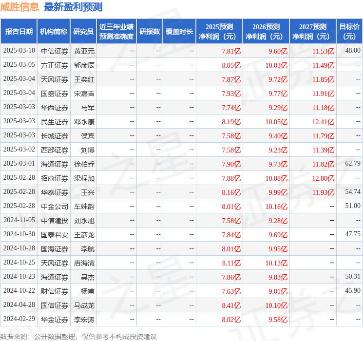 以下是详细的盈利预测信息:
