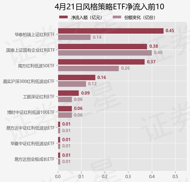 证券之星消息,4月21日风格策略ETF基金合计资金净流出1.61亿元,近5个交易日累计净流出7.07亿元,5个交易日中出现日合计资金净流出的有5天(ETF资金流向计算公式:(当日ETF场内流通份额-前一交易日ETF场内流通份额)*当日ETF均价,计算结果仅供参考)。