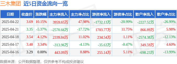 4月22日的资金流向数据方面,主力资金净流入3959.65万元,占总成交额47.98%,游资资金净流出1732.13万元,占总成交额20.99%,散户资金净流出2227.52万元,占总成交额26.99%。