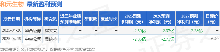 和元生物2024年年报显示,公司主营收入2.48亿元,同比上升21.16%;归母净利润-3.22亿元,同比下降151.54%;扣非净利润-3.36亿元,同比下降151.53%;其中2024年第四季度,公司单季度主营收入6428.18万元,同比下降5.2%;单季度归母净利润-1.32亿元,同比下降132.32%;单季度扣非净利润-1.36亿元,同比下降146.53%;负债率23.86%,投资收益0.36万元,财务费用39.36万元,毛利率-37.81%。