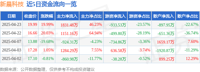 4月23日的资金流向数据方面,主力资金净流入1831.48万元,占总成交额46.23%,游资资金净流出933.53万元,占总成交额23.57%,散户资金净流出897.95万元,占总成交额22.67%。