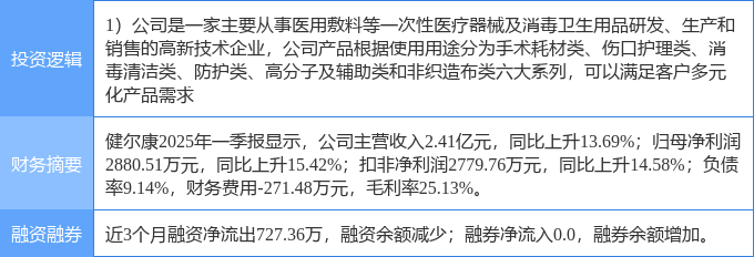 该股为医疗器械概念热股,当日医疗器械概念上涨0.19%。