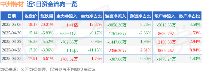 今日中洲特材涨停的可能因素有:其一,高温合金板块整体走强带动个股异动,板块内多只个股涨幅居前形成联动效应。其二,公司作为核电产业链上游核心供应商,其特种焊材、高温耐蚀合金产品已为中核、中广核等企业配套,核能领域技术突破预期持续发酵。其三,市场对公司在海工装备、3D打印等新兴领域的材料应用存在战略想象空间,叠加有色金属板块景气度回升形成催化。