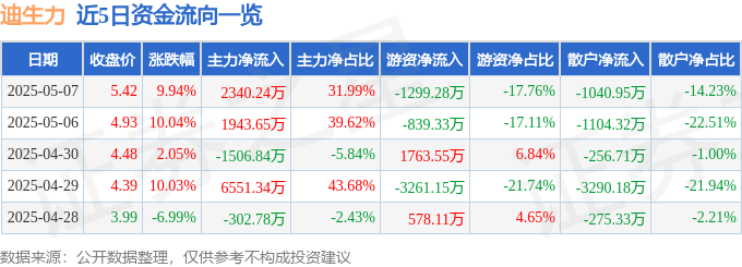 5月7日的资金流向数据方面,主力资金净流入2340.24万元,占总成交额31.99%,游资资金净流出1299.28万元,占总成交额17.76%,散户资金净流出1040.95万元,占总成交额14.23%。