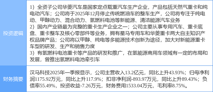 该股为新能源汽车,重卡,氢能源/燃料电池概念热股,当日新能源汽车概念上涨1.56%,重卡概念上涨1.47%,氢能源/燃料电池概念上涨1.29%。