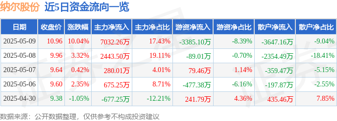 5月9日的资金流向数据方面,主力资金净流入7032.26万元,占总成交额17.43%,游资资金净流出3385.1万元,占总成交额8.39%,散户资金净流出3647.16万元,占总成交额9.04%。