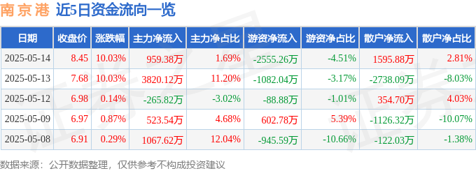 5月14日的资金流向数据方面,主力资金净流入959.38万元,占总成交额1.69%,游资资金净流出2555.26万元,占总成交额4.51%,散户资金净流入1595.88万元,占总成交额2.81%。