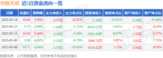5月14日的资金流向数据方面,主力资金净流入6.37亿元,占总成交额32.01%,游资资金净流出3.1亿元,占总成交额15.61%,散户资金净流出3.26亿元,占总成交额16.4%。