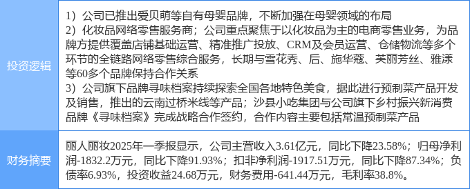 该股为化妆品,预制菜,优化生育(三孩)概念热股,当日化妆品概念上涨4.76%,预制菜概念上涨0.78%,优化生育(三孩)概念上涨0.57%。