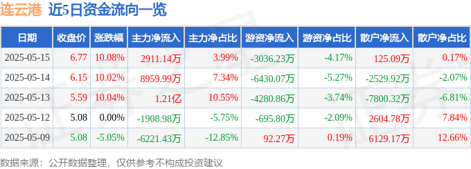 5月15日的资金流向数据方面,主力资金净流入2911.14万元,占总成交额3.99%,游资资金净流出3036.23万元,占总成交额4.17%,散户资金净流入125.09万元,占总成交额0.17%。