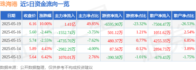 5月19日的资金流向数据方面,主力资金净流入1.41亿元,占总成交额49.85%,游资资金净流出6595.9万元,占总成交额23.32%,散户资金净流出7504.47万元,占总成交额26.53%。