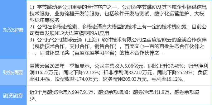 该股为字节跳动概念股,百度概念股,多模态概念热股,当日字节跳动概念股概念上涨2.06%,百度概念股概念上涨1.39%,多模态概念上涨1.31%。