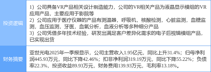 该股为VR&AR,电子后视镜,呼吸机概念热股。