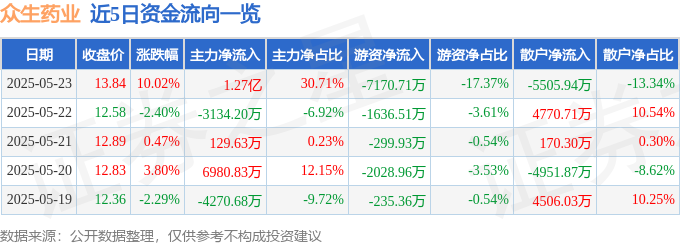 5月23日的资金流向数据方面,主力资金净流入1.27亿元,占总成交额30.71%,游资资金净流出7170.71万元,占总成交额17.37%,散户资金净流出5505.94万元,占总成交额13.34%。