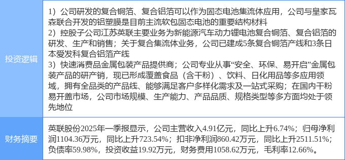 该股为PET复合铜箔,固态电池,包装印刷概念热股。