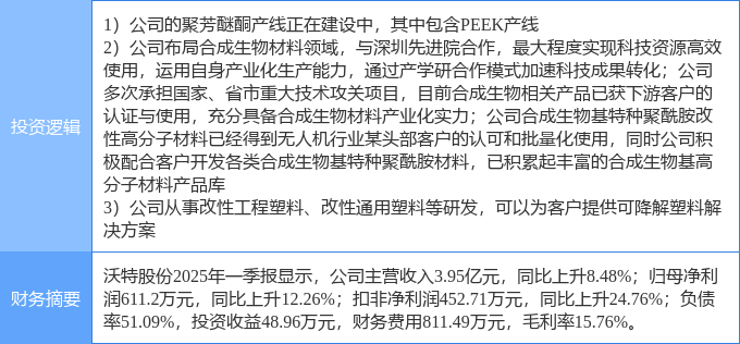 该股为PEEK材料,可降解塑料,合成生物概念热股,当日PEEK材料概念上涨0.74%,可降解塑料概念上涨0.3%,合成生物概念上涨0.01%。