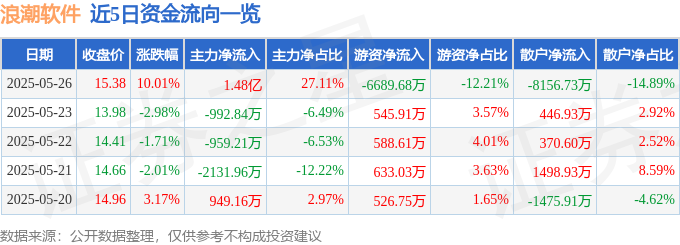 5月26日的资金流向数据方面,主力资金净流入1.48亿元,占总成交额27.11%,游资资金净流出6689.68万元,占总成交额12.21%,散户资金净流出8156.73万元,占总成交额14.89%。