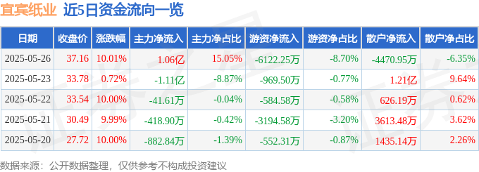 5月26日的资金流向数据方面,主力资金净流入1.06亿元,占总成交额15.05%,游资资金净流出6122.25万元,占总成交额8.7%,散户资金净流出4470.95万元,占总成交额6.35%。