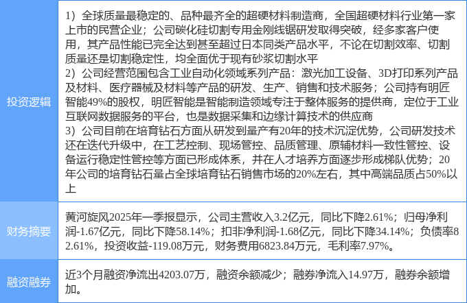 该股为培育钻石,金刚线,智能制造概念热股,当日培育钻石概念上涨2.9%,金刚线概念上涨0.7%。