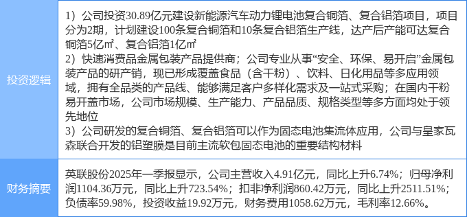该股为包装印刷,固态电池,锂电池概念热股,当日包装印刷概念上涨1.12%,固态电池概念上涨0.8%,锂电池概念上涨0.36%。