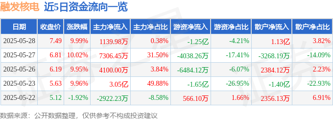 5月28日的资金流向数据方面,主力资金净流入1139.98万元,占总成交额0.38%,游资资金净流出1.25亿元,占总成交额4.21%,散户资金净流入1.13亿元,占总成交额3.82%。